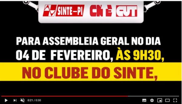 SINTE-PI convoca todos os trabalhadores em educação, ativos e aposentados, para uma assembleia geral dia 4 de fevereiro de 2020, às 9:30 no clube do Sinte, para discutir a campanha de valorização dos Trabalhadores em educação 2019 - 2020 e também aprovaram indicativo de greve da categoria.